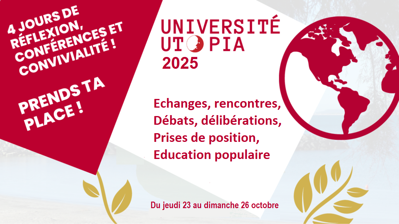 Le Mouvement Utopia tiendra cette année encore son université annuelle à Sète, en partenariat avec le mouvement Convivialiste et l'Archipel des Confluences. Les Invités d’honneur sont Gael Giraud, Fanny Lacroix, Philippe Meirieu Le thème central : Un monde fini, une chance pour l’émancipation ? "Et si la finitude de notre monde pouvait être une chance […]