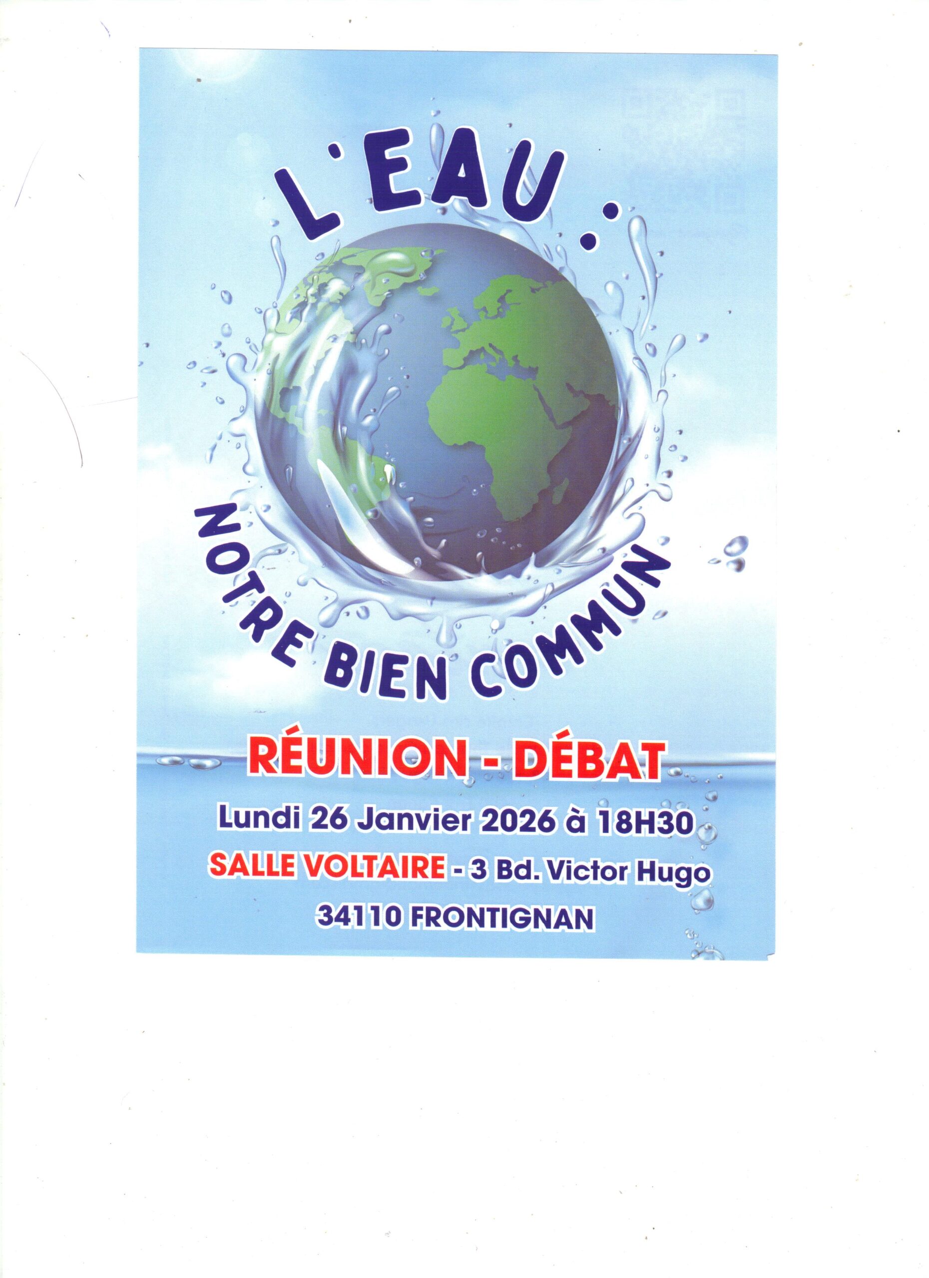 Après la rencontre du 15 janvier à Mèze en présence du maire de la commune Thierry BAEZA, nouvelle invitation à débattre des problématiques de l'eau sur le territoire de la communauté d'agglomération, cette fois-ci dans la commune de Frontignan.