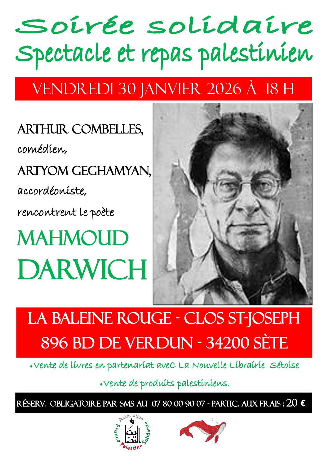 L'Association France-Palestine Solidarité -Sète organise une soirée solidaire où la poésie et la convivialité se rencontreront. - Spectacle autour de l'oeuvre du poète palestinien Mahmoud Darwich avec Arthur Combelles, comédien et Artyom Geghamyan, accordéonniste + Repas palestinien Les personnes intéressées doivent obligatoirement s'inscrire en envoyant un SMS au 07 80 00 90 07 car le […]