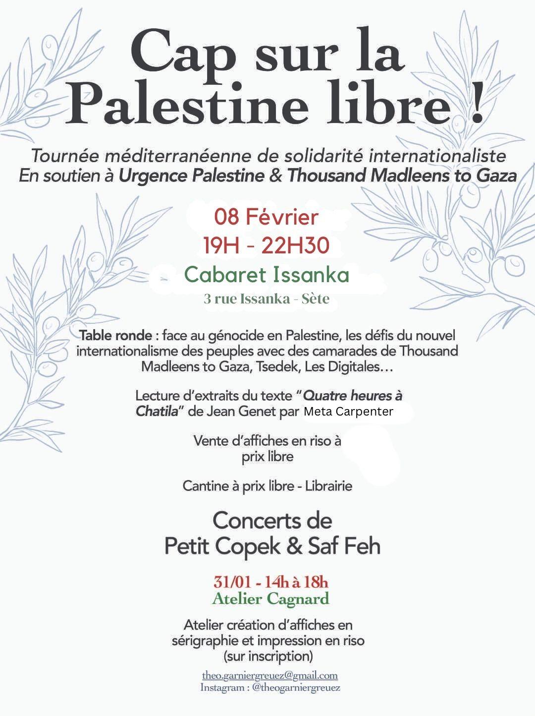 Dans le cadre de la tournée méditerranéenne de solidarité internationaliste en soutien à Urgence Palestine et Thousand to Madleens to Gaza,