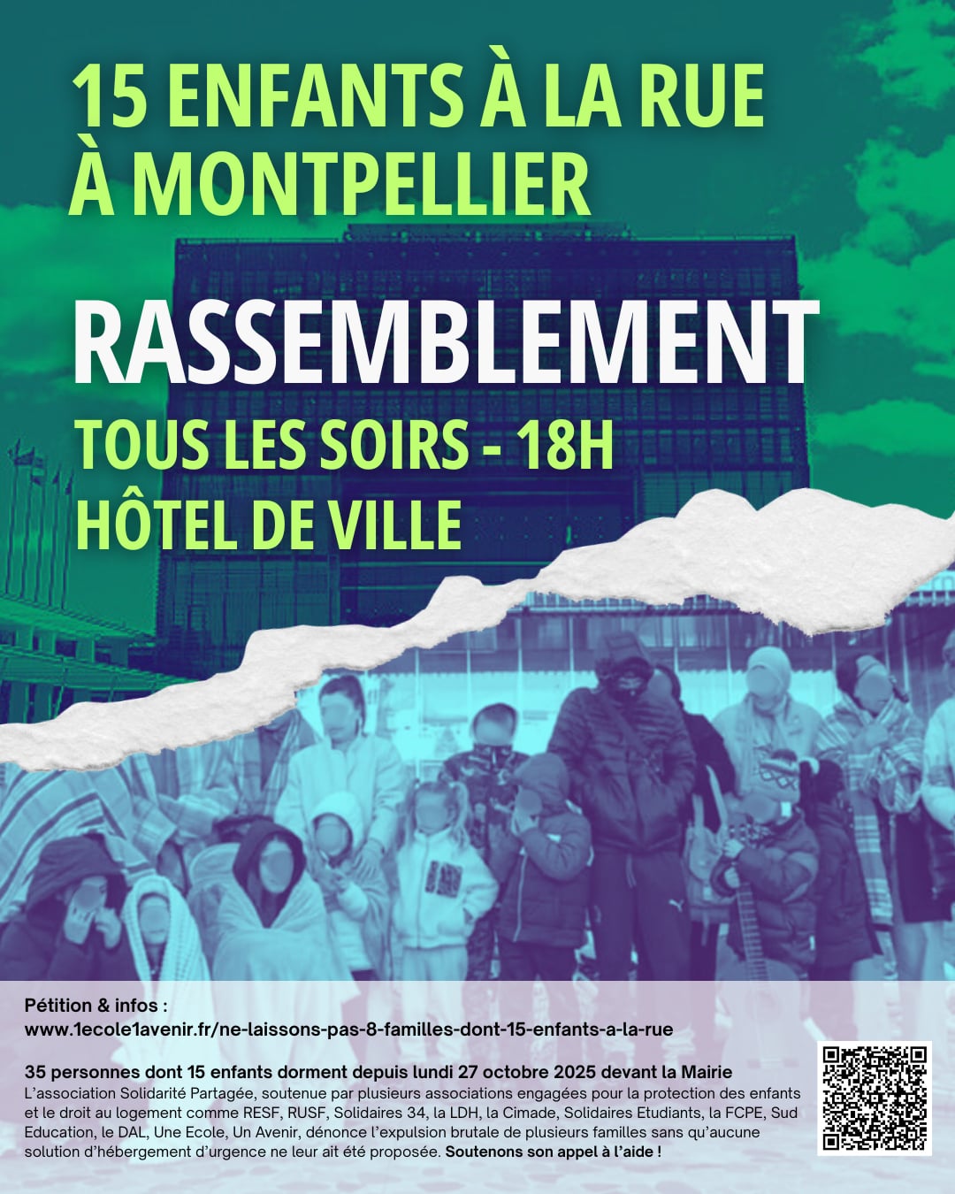 Sur place, mercredi 29 octobre au soir, Pierre Renard infirmier au CHU de Montpellier témoignait d’une tension palpable. Interrogé, il raconte : « il y avait entre quatre-vingts et cent personnes, qui se sont relayées devant la mairie… J’ai pris la parole pour condamner avec la plus grande fermeté le fait que la mairie de Montpellier laisse des enfants dormir dans la rue. » Parmi les élus venus dialoguer, Michel Calvo, adjoint socialiste à la cohésion sociale et à la lutte contre l’exclusion, « il nous a dit que ce n’était pas de leur ressort, que la compétence relevait de la préfecture. »